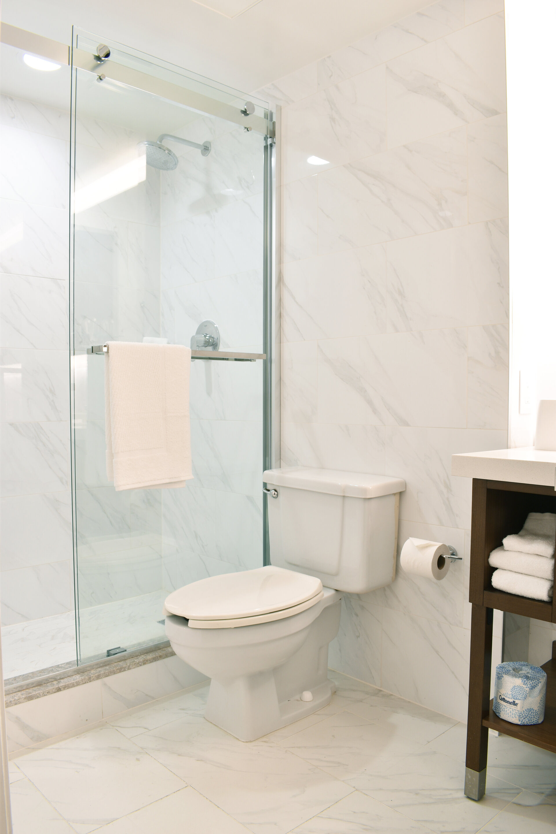 Accessible room options are available, including roll-in showers and visual alarms for added convenience.One Queen Guest Room